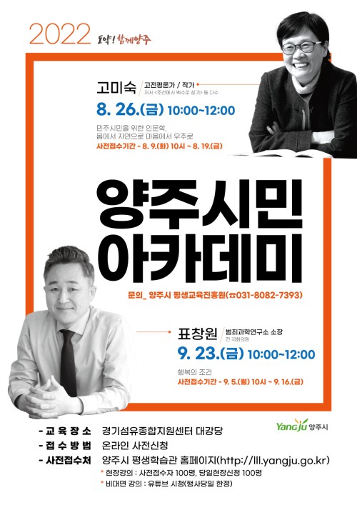 ¾çÁÖ½Ã(½ÃÀå °¼öÇö)´Â ¿À´Â 8¿ù 26Àϰú 9¿ù 23ÀÏ ¾çÀϰ£ °æ±â¼¶À¯Á¾ÇÕÁö¿ø¼¾ÅÍ ´ë°´ç¿¡¼ ‘2022³â ¾çÁֽùΠ¾ÆÄ«µ¥¹Ì’¸¦ °³ÃÖÇÑ´Ù.