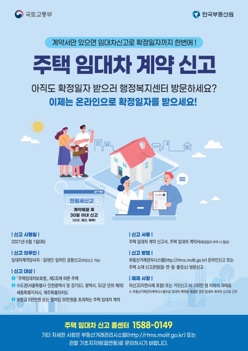 ÁÖÅÃÀÓ´ëÂ÷ ½Å°í´ë»óÀº 2021³â 6¿ù 1ÀÏ ÀÌÈÄ Ã¼°áµÈ º¸Áõ±Ý 6õ¸¸¿ø ¶Ç´Â ¿ùÂ÷ÀÓ 30¸¸¿øÀ» ÃʰúÇÏ´Â ÁÖÅÃÀÓ´ëÂ÷ °è¾à(±Ý¾× º¯µ¿ÀÌ ÀÖ´Â Àç°è¾à Æ÷ÇÔ)À¸·Î ÀÓ´ëÂ÷°è¾à ü°áÀϷκÎÅÍ 30ÀÏ À̳» ÀÓÂ÷ÁÖÅà ¼ÒÀçÁö °üÇÒ ÇàÁ¤º¹Áö¼¾Å͸¦ ¹æ¹®Çϰųª ºÎµ¿»ê°Å·¡°ü¸®½Ã½ºÅÛÀ» ÅëÇØ ¿Â¶óÀÎÀ¸·Î ½Å°íÇÏ¸é µÈ´Ù.