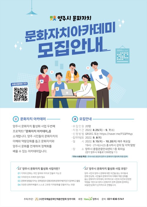 ¾çÁÖ½Ã(½ÃÀå °¼öÇö)´Â ¿À´Â 9¿ù 7ÀϱîÁö ½Ã¹ÎµéÀÇ ¹®ÈÀÚÄ¡ ÀÌÇØ¿Í ¿ª·®°È¸¦ µ½´Â ‘¹®ÈÀÚÄ¡ ¾ÆÄ«µ¥¹Ì’¼ö°»ý 20¸íÀ» ¸ðÁýÇÑ´Ù.