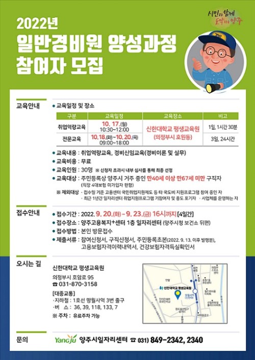 Âü¿©¸¦ Èñ¸ÁÇÏ´Â ±¸Á÷ÀÚ´Â 9¿ù 20ÀϺÎÅÍ 23ÀϱîÁö·Î ¾çÁÖ½Ãû º¸°Ç¼Ò µÚÆí ¾çÁÖ°í¿ëº¹Áö⁺¼¾ÅÍ 1Ãþ, ¾çÁÖ½ÃÀÏÀÚ¸®¼¾ÅÍ(031-849-2342)·Î ¹æ¹®ÇØ Á¢¼öÇÏ¸é µÈ´Ù.