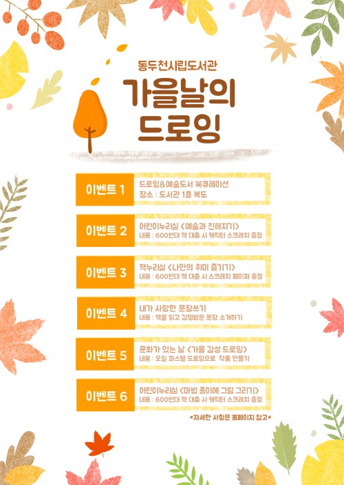 À̹ۿ¡ Áö³ 7¿ù°ú 8¿ù, <ÀÚ°³ ±×¸³Åå ¸¸µé±â>·Î Å« È£ÀÀÀ» ¾òÀº ¹®È°¡ ÀÖ´Â ³¯ Çà»ç¸¦ 9¿ù°ú 10¿ù¿¡µµ ¿î¿µÇÑ´Ù. ÁÖÁ¦´Â <°¡À»³¯ÀÇ °¨¼º µå·ÎÀ×>À¸·Î, ¿ÀÀÏ ÆÄ½ºÅÚÈÀÇ ±âº» µå·ÎÀ×À» ¹è¿ì°í, ³ª¸¸ÀÇ ÀÛǰÀ» ±×·Áº¸´Â üÇèÀÌ´Ù. üÇèÀº 9¿ù 24ÀÏ Åä¿äÀÏ 10½Ã¿Í 10¿ù 26ÀÏ ¼ö¿äÀÏ 14½Ã¿¡ ¿î¿µÇÑ´Ù.