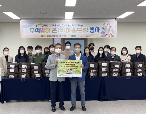 ¿ÃÇØ Ãß¼®¸ÂÀÌ ‘¿Â许¶À½µå¸²’ Çà»ç´Â LHÇѱ¹ÅäÁöÁÖÅðø»ç ¾çÁÖ»ç¾÷º»ºÎ·ÎºÎÅÍ ±Ý2,000,000¿øÀ» Áö¿ø¹Þ¾Æ ÁøÇàµÇ¾ú´Ù. 5ÀÏ Çà»ç ´çÀÏ¿¡´Â LH ÀÌÀç·Î ¾çÁÖ»ç¾÷º»ºÎÀå ÀÌÇÏ 14¸íÀÇ Á÷¿øµéÀÌ ¾çÁֽà Áö¿ª ³» Àå¾ÖÀεéÀ» À§ÇÑ ¸íÀý ¼±¹° ¼¼Æ® Æ÷Àå ÀÛ¾÷¿¡ ºÀ»çÀÚ·Î Âü¿©ÇÏ¿´´Ù. À̹ø ‘¿Â许¶À½µå¸²’ ¸íÀý ¼±¹° ¼¼Æ®´Â °¥ºñÅÁ, Àü ¼¼Æ®, ¼ÛÆí, ½ÄÇý, °úÀÏ µîÀÌ ´ã°Ü 4ÀÎ °¡Á·ÀÌ Ãß¼® ÇÑ »ó Â÷¸² ½Ä»ç¸¦ ÇÒ ¼ö ÀÖµµ·Ï ±¸¼ºµÇ¾ú´Ù.
