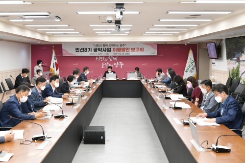 À̹ø º¸°íȸ´Â Áö³ ¼±°Å ±â°£ °¼öÇö ½ÃÀåÀÌ ½Ã¹Îµé°ú ¾à¼ÓÇÑ °ø¾à¿¡ ´ëÇØ ±¸Ã¼ÀûÀÎ ½ÇÇà°èȹÀ» ¼ö¸³ÇÏ°í ¹Î¼± 8±â ½ÃÁ¤ °¡Ä¡°¡ ¹Ý¿µµÈ ¼¼ºÎ ÃßÁø¹æ¾ÈÀ» ¸ð»öÇϱâ À§ÇÑ ÀÚ¸®·Î ¸¶·ÃµÆ´Ù.
