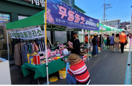 ³ª´®ÀåÅÍ¿¡´Â ÀÇ·ù, µµ¼, Àå³°¨, ÀÎÇü, ½Å¹ß, ¹®±¸, ÀÚÀü°Å, ÀüÀÚÁ¦Ç° µî Áö¿ª ÁֹεéÀÌ ÀÚ¹ßÀûÀ¸·Î ±âºÎÇÑ ´Ù¾çÇÑ ¹°Ç°ÀÌ Áø¿µÅ ¹æ¹®°´ ´©±¸³ª ÀÚÀ¯·Ó°Ô Áß°í¹°Ç°À» ±¸ÀÔ, ±³È¯Çß´Ù.