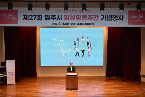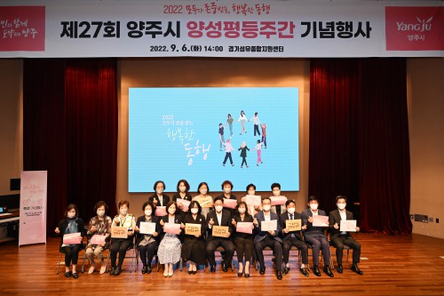 ¾çÁÖ½Ã(½ÃÀå °¼öÇö)´Â Áö³ 6ÀÏ °æ±â¼¶À¯Á¾ÇÕÁö¿ø¼¾ÅÍ¿¡¼ ¾ç¼ºÆòµîÁÖ°£À» ¸Â¾Æ ‘¸ðµÎ°¡ Á¸Áß¹Þ´Â, ÇູÇÑ µ¿Çà’À̶ó´Â ½½·Î°Ç°ú ÇÔ²²‘Á¦27ȸ ¾ç¼ºÆòµîÁÖ°£ ±â³äÇà»ç’¸¦ °³ÃÖÇß´Ù.
