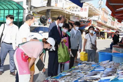 ¹ÚÇü´ö µ¿µÎõ½ÃÀåÀº 8ÀÏ Ãß¼®¸íÀýÀ» ¸ÂÀÌÇÏ¿© Å«½ÃÀå ¹× ¼¼¾ÆÇÁ¶óÀÚ, Áß¾Ó½ÃÀå µî ÀüÅë½ÃÀåÀ» ã¾Æ »óÀεéÀ» °Ý·ÁÇß´Ù. ÀÌ´Â Äڷγª19·Î ¼Òºñ½É¸®°¡ À§ÃàµÈ »óȲ¿¡¼ »óÀεéÀ» ¸¸³ª ÇöÀåÀÇ À̾߱⸦ Á÷Á¢ µè°íÀÚ ÇÑ °ÍÀÌ´Ù.