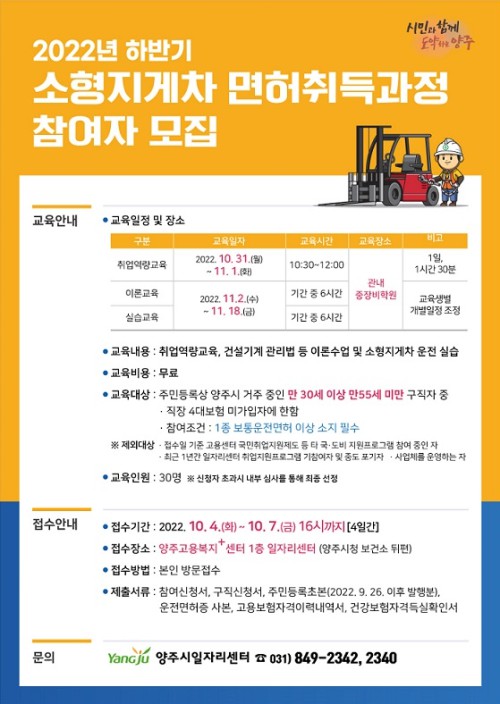 ¾çÁÖ½Ã(½ÃÀå °¼öÇö)´Â ¿À´Â 10¿ù 4ÀϺÎÅÍ 7ÀϱîÁö 2022³â Ãë¾÷Áö¿øÇÁ·Î±×·¥ ‘ÇϹݱ⠼ÒÇüÁö°ÔÂ÷ ¸éÇãÃëµæ°úÁ¤’¿¡ Âü¿©ÇÒ ±³À°»ýÀ» ¸ðÁýÇÑ´Ù.