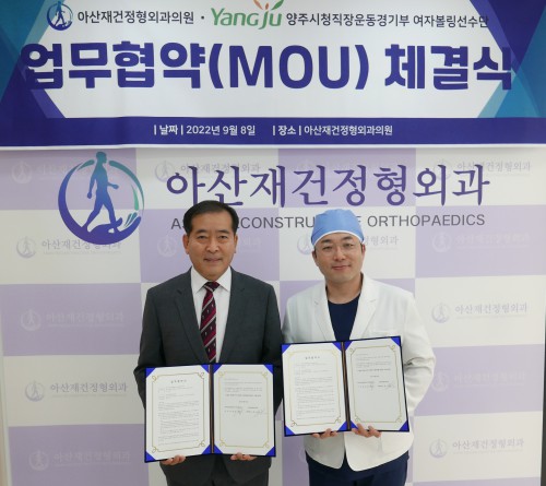 ¾çÁÖ½Ãû Á÷Àå¿îµ¿°æ±âºÎ(°¨µ¶ ³²»óÄ¥)¿Í ¾Æ»êÀç°ÇÁ¤Çü¿Ü°ú(´ëÇ¥¿øÀå Á¶ÈƽÄ)´Â Áö³ 8ÀÏ ¼±¼ö´ÜÀÇ °Ç°°ü¸®¿Í ÃÖÀûÀÇ ÀÇ·á ¼ºñ½º¸¦ Á¦°øÇϱâ À§ÇÑ ¾÷¹«Çù¾à(MOU)¸¦ ü°áÇÏ¸ç »óÈ£°£ÀÇ Çù·ÂÀ» µµ¸ðÇß´Ù.