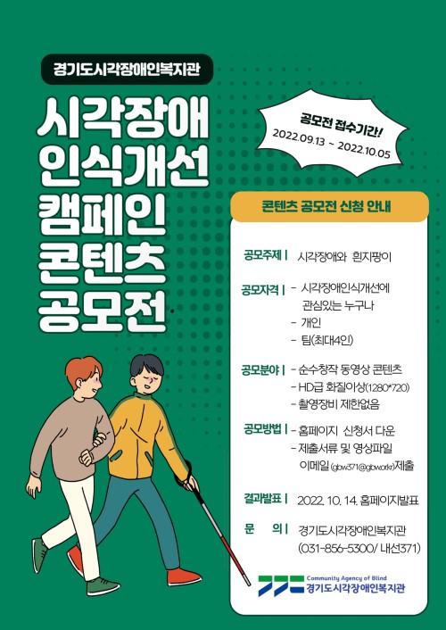 °ø¸ðÀü°ú °ü·ÃµÈ ÀÚ¼¼ÇÑ »çÇ×Àº °æ±âµµ½Ã°¢Àå¾ÖÀκ¹Áö°ü ȨÆäÀÌÁö(https://www.gbw.or.kr)¸¦ Âü°íÇϰųª °æ±âµµ½Ã°¢Àå¾ÖÀκ¹Áö°ü ÀÚ¸³±³À°Áö¿øÆÀ(031-856-5300/ ³»¼± 371)·Î ¹®ÀÇÇÏ¸é µÈ´Ù.