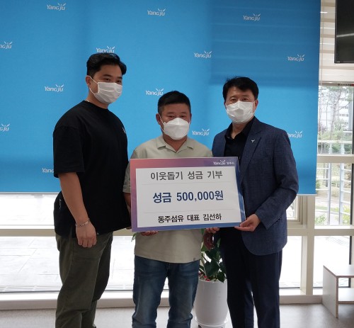 ¾çÁֽà ȸõ4µ¿ ÇàÁ¤º¹Áö¼¾ÅÍ(µ¿Àå ÀÌâ¿)´Â Áö³ 15ÀÏ À²Á¤µ¿ ¼ÒÀç µ¿ÁÖ¼¶À¯(´ëÇ¥ ±è¼ÇÏ)¿¡¼ ÁÖÀ§ ¾î·Á¿î ÀÌ¿ôÀ» À§ÇØ ½á´Þ¶ó¸ç ¼º±Ý 50¸¸¿øÀ» ±âºÎÇß´Ù°í ¹àÇû´Ù.