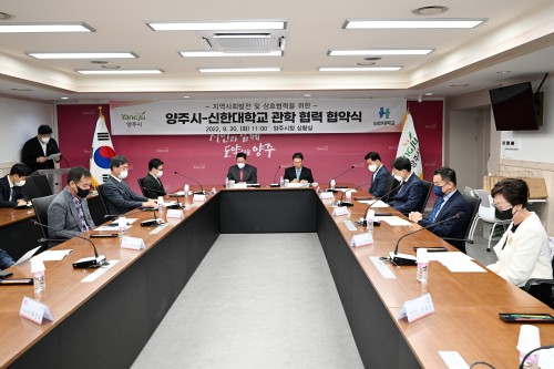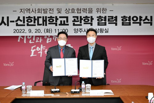 ¾çÁÖ½Ã(½ÃÀå °¼öÇö)´Â 20ÀÏ ½Ãû »óȲ½Ç¿¡¼ ½ÅÇÑ´ëÇб³(ÃÑÀå °¼ºÁ¾)¿Í Áö¿ª¹ßÀü°ú ´ëÇÐÀÇ °æÀï·Â È®º¸¸¦ ÅëÇÑ »çȸÀû °¡Ä¡ âÃâÀ» À§ÇÑ °ü·ÇÐ Çù·Â Çù¾à½ÄÀ» ü°áÇß´Ù.