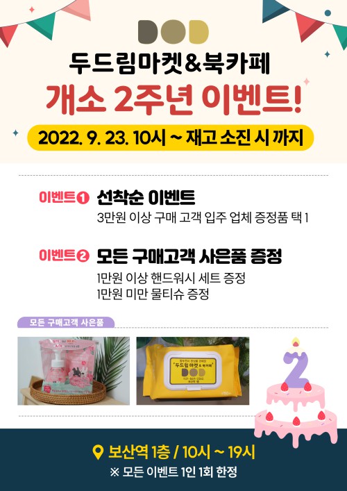 µ¿µÎõ½Ã ¿Ï¼ºÇ° ÆÇ¸ÅÀå ‘µÎµå¸²¸¶ÄÏ&ºÏÄ«Æä’°¡ ¿À´Â 9¿ù 23ÀÏ °³¼Ò 2Áֳ⠸ÂÀÌ À̺¥Æ®¸¦ ÁøÇàÇÑ´Ù.