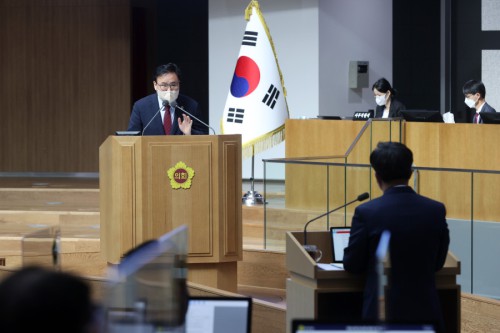±è À§¿øÀåÀº “À̹ø µµÁ¤Áú¹®Àº ±èµ¿¿¬ Áö»çÀÇ ÇùÄ¡¿Í °ø¾à¿¡ ´ëÇÑ ‘ÁøÁ¤¼º’°ú ‘½ÇÇö°¡´É¼º’À» Æò°¡ÇÏ´Â ÀÚ¸®¿´´Ù”°í ¹àÈ÷¸ç, “µµ¹Î ¾Õ¿¡ ÀÚ¼¼¸¦ ³·Ãß°í, µµÀÇȸ¸¦ Á¸ÁßÇÏ´Â ¸¶À½À¸·Î ´ëÇØ¾ß µµÁ¤¿î¿µ¿¡ ´ëÇÑ ÁøÁ¤¼ºÀ» ÀÎÁ¤¹ÞÀ» ¼ö ÀÖÀ» °Í”À̶ó°í Çϸç Áú¹®À» ¸¶¹«¸®ÇÏ¿´´Ù.