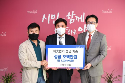 ¾çÁÖ½Ã(½ÃÀå °¼öÇö)´Â Áö³ 21ÀÏ ¢ß´ëÇö±Ý¼Ó(´ëÇ¥ À̱ÔÈÆ)ÀÌ ½ÃûÀ» ¹æ¹®ÇØ Àú¼ÒµæÃþÀ» µ½±â À§ÇØ ¼º±Ý 5¹é¸¸¿øÀ» ±âºÎÇß´Ù°í ¹àÇû´Ù.