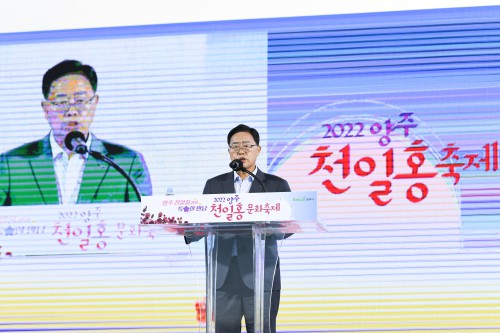 °¼öÇö ¾çÁÖ½ÃÀåÀÌ Áö³ 24ÀÏ ¾çÁÖ ³ª¸®³ó¿ø ÀÏ¿ø¿¡¼ ¿¸° ‘2022³â ¾çÁÖ Ãµ¸¸¼ÛÀÌ ÃµÀÏÈ« ÃàÁ¦’ °³¸·½Ä¿¡ Âü¼®ÇØ ±â³ä»ç¿Í ÇÔ²² °³¸·¼±¾ðÀ» Çϰí ÀÖ´Ù.