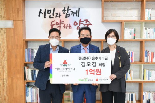 °¼öÇö ¾çÁÖ½ÃÀåÀº “°æ±âħü µîÀ¸·Î ¾î·Á¿î °æÁ¦¿©°Ç ¼Ó¿¡¼ ¿ì¸® ¼Ò¿ÜµÈ ÀÌ¿ôÀ» À§ÇØ °³ÀÎÀÌ 1¾ï¿øÀ» ±âºÎÇÏ´Â °ÍÀº °áÄÚ ½¬¿î ÀÏÀÌ ¾Æ´Ï¹Ç·Î ±è¿À°â ȸÀåÀÇ ¾çÁֽà 8È£ ¾Æ³Ê °¡ÀÔÀ» Áø½ÉÀ¸·Î °¨»çµå¸°´Ù”¸ç “½Ã¿¡¼µµ °ü³» ¼Ò¿ÜµÈ ÀÌ¿ôÀÌ ¾øµµ·Ï º¹Áö»ç°¢Áö´ë ÇØ¼Ò¸¦ À§ÇØ Àû±Ø ³ë·ÂÇϰڴٔ°í ¸»Çß´Ù.