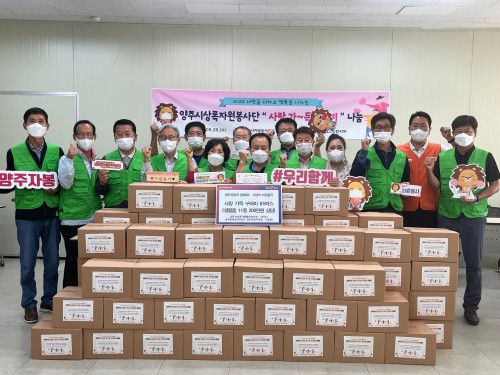 (»ç)¾çÁÖ½ÃÀÚ¿øºÀ»ç¼¾ÅÍ(¼¾ÅÍÀå ±è¿ëÈÆ)´Â Áö³ 9¿ù 28ÀÏ ¾çÁֽûó·ÏÀÚ¿øºÀ»ç´Ü(´ÜÀå ½Å´ë¼ö)°ú ÇÔ²² Ãß¿öÁö´Â ³¯¾¾¿Í Äڷγª19 ÀçÈ®»êÀ¸·Î »ýȰÀÌ ¾î·Á¿î °ü³» Ãë¾à°èÃþ¿¡ À§·Î¿Í »ç¶ûÀÇ ¼Õ±æÀ» ÀüÇϱâ À§ÇØ »ç¶û°¡µæ ²Ù·¯¹Ì 65¹Ú½º¸¦ Á¦ÀÛ‧Àü´ÞÇß´Ù.