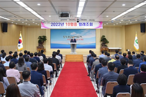 µ¿µÎõ½Ã(½ÃÀå ¹ÚÇü´ö)´Â 4ÀÏ, ½Ãû ´ëȸÀǽǿ¡¼ 10¿ù Áß Á÷¿ø ¿ù·ÊÁ¶È¸¸¦ °³ÃÖÇÏ¿´´Ù.
