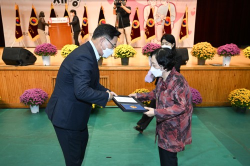 Çà»ç´Â ½ÄÀü°ø¿¬À» ½ÃÀÛÀ¸·Î ¿ÀÈÄ 2½ÃºÎÅÍ °¢ 11°³ À¾¸éµ¿ÀÇ ±â¼ö´Ü ÀÔÀå½Ä, ³ëÀΰ·É ¹× °æ·ÎÇåÀå ³¶µ¶, °æ±âµµÁö»ç»ó, ¾çÁÖ½ÃÀå»ó, ±¹È¸ÀÇ¿ø»ó µî 55¸íÀÇ À¯°øÀÚ Ç¥Ã¢ ½Ã»ó½ÄÀÌ À̾îÁ³´Ù.