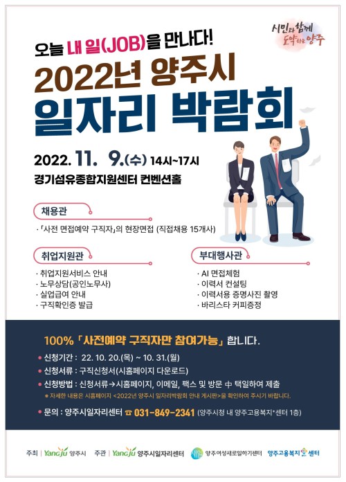 ¾çÁÖ½Ã(½ÃÀå °¼öÇö)´Â ¿À´Â 11¿ù 9ÀÏ °æ±â¼¶À¯Á¾ÇÕÁö¿ø¼¾ÅÍ ÄÁº¥¼ÇȦ¿¡¼ ¾çÁÖ»õÀϼ¾ÅÍ, ¾çÁÖ°í¿ëº¹Áö+¼¾ÅÍ¿Í ÇÔ²² °øµ¿À¸·Î ‘2022³â ¾çÁֽà ÀÏÀÚ¸®¹Ú¶÷ȸ’¸¦ °³ÃÖÇÑ´Ù°í ¹àÇû´Ù.