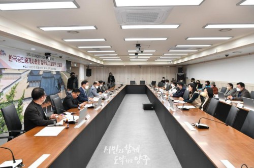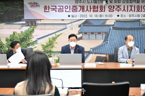 ¾çÁÖ½Ã(½ÃÀå °¼öÇö)´Â Áö³ 18ÀÏ ½Ãû »óȲ½Ç¿¡¼ Çѱ¹°øÀÎÁß°³»çÇùȸ ¾çÁÖ½ÃÁöȸ(ÁöȸÀå ÀüÁö¿ø) ÀÓ¿ø °£´ãȸ¸¦ ¿°í ºÎµ¿»ê ÇöÀåÀÇ »ý»ýÇÑ ¸ñ¼Ò¸®¸¦ µé¾ú´Ù.