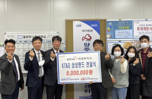 ¾çÁֽù«Çѵ¹º½Èñ¸Á¼¾ÅÍ(¼¾ÅÍÀå À̵µÈñ)´Â KT&G ÀÇÁ¤ºÎÁö»ç(¹ÚÈ£Áø Áö»çÀå)·ÎºÎÅÍ Áö¿ª»çȸ À§±â°¡Á¤ Áö¿øÀ» À§ÇÑ '»ó»óÆÝµå‘ ±â±Ý 600¸¸¿øÀ» Àü´Þ¹Þ¾Ò´Ù.