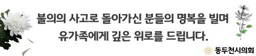 ±è½ÂÈ£ ÀÇÀåÀº“¾ÈŸ±î¿î »ç°í¿¡ ³Ê¹«³ª Ȳ¸ÁÇÏ°í ½½Ç ¸¶À½»Ó”À̶ó¸ç, “À¯¸íÀ» ´Þ¸®ÇÑ ºÐµéÀÇ ¸íº¹°ú ºÎ»óÀÚµéÀÇ ÄèÀ¯¸¦ ±â¿øÇϸç, µ¿µÎõ½ÃÀÇȸ ¸ðµç ÀÇ¿øÀº ¾ö¼÷ÇÑ ¸¶À½À¸·Î ÀÇÁ¤È°µ¿¿¡ Â÷ºÐÈ÷ ÀÓÇÒ °Í”À̶ó°í ¹àÇû´Ù.