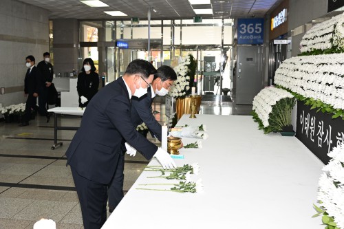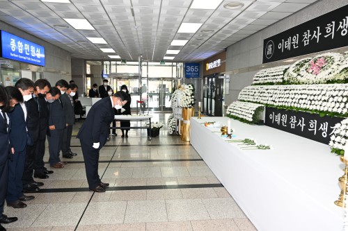 Áö³ 1ÀÏ °¼öÇö ½ÃÀåÀ» ºñ·ÔÇÑ °£ºÎ °ø¹«¿øµéÀº ½Ãû »óȲ½Ç¿¡¼ ¿¸° È®´ë°£ºÎȸÀÇ¿¡ ¾Õ¼ ÀÌÅ¿ø »ç°í »ç¸ÁÀÚ¸¦ Ã߸ðÇÏ´Â ¹¬³äÀÇ ½Ã°£À» °®Àº ¹Ù ÀÖ´Ù.