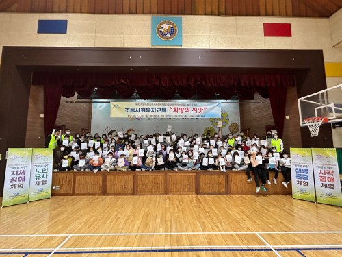 ¾çÁֽûçȸº¹ÁöÇùÀÇȸ(ȸÀå Ȳ»ê)´Â 11¿ù 3ÀÏ ¿ÀÀü 9½ÃºÎÅÍ ¼¼ ½Ã°£ µ¿¾È Äڷγª19·Î ÀÎÇÑ ¹æ¿ª¼öÄ¢À» ÁؼöÇÑ °¡¿îµ¥ ¾çÁÖ±¤»çÃʵîÇб³ 4Çгâ 5ÇÐ±Þ ÃÑ 150¿©¸íÀÇ ÇлýÀ» ´ë»óÀ¸·Î “2022³â ¾çÁÖ½ÃÃʵî»çȸº¹Áö±³À° Èñ¸ÁÀÇ ¾¾¾Ñ” ±³À° ¹× ¼ö·á½ÄÀ» ÁøÇàÇÏ¿´´Ù.