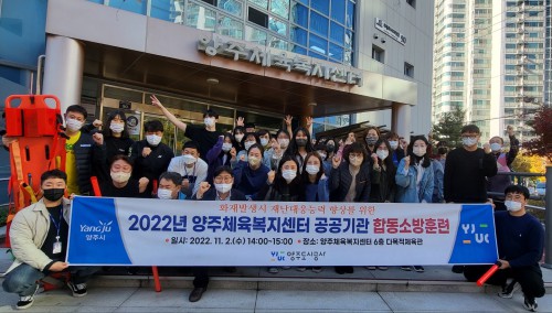 ¾çÁÖµµ½Ã°ø»ç(»çÀå ÀÌÈï±Ô) ¾çÁÖüÀ°º¹Áö¼¾ÅÍ¿¡¼ °ø°ø½Ã¼³ Àç³¾ÈÀü ´ëÀÀ´É·Â Çâ»óÀ» À§ÇØ '¾çÁÖüÀ°º¹Áö¼¾ÅÍ °ø°ø±â°ü ÇÕµ¿¼Ò¹æÈÆ·Ã'À» Áö³ 11¿ù 2ÀÏ ½Ç½ÃÇÏ¿´´Ù.