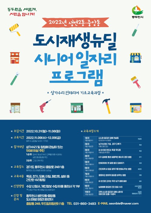 µ¿µÎõ½Ã »ý¿¬2µ¿·Áß¾Óµ¿ µµ½ÃÀç»ýÇöÀåÁö¿ø¼¾ÅÍ¿¡¼´Â 11¿ù 9ÀϺÎÅÍ µµ½ÃÀç»ý»ç¾÷Áö¿ª ³» 50¼¼ ÀÌ»óÀÇ »ýȰ±ÇÀÚ¸¦ ´ë»óÀ¸·Î ‘»ó°¡¼ö¸® ÀÎÅ׸®¾î ±âÃʱ³À°’À» ¿î¿µÇÑ´Ù.