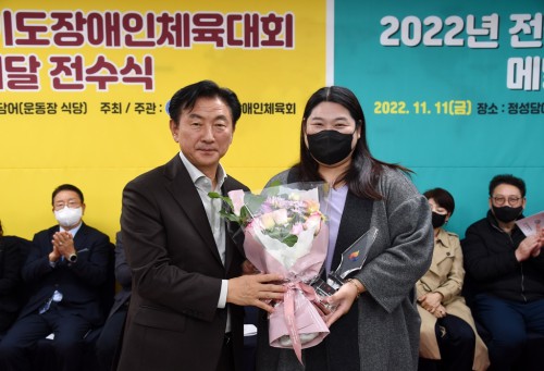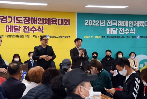 ÀÇÁ¤ºÎ½Ã(½ÃÀå ±èµ¿±Ù)´Â 11¿ù 11ÀÏ Á¦12ȸ °æ±âµµÀå¾ÖÀÎüÀ°´ëȸ ¹× 2022 Àü±¹Àå¾ÖÀÎüÀ°´ëȸ¿¡¼ ÀÔ»óÇÑ ÀÇÁ¤ºÎ½Ã Àå¾ÖÀμ±¼öµé¿¡°Ô ¸Þ´Þ Àü¼ö½ÄÀ» °¡Á³´Ù°í ¹àÇû´Ù.