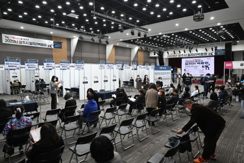 ½Ã °ü°èÀÚ´Â “ºÒƯÁ¤ ´Ù¼öÀÇ ±¸Á÷ÀÚ°¡ ä¿ë°Ô½Ã´ëÀÇ ´Ü¼ø ±¸ÀÎÁ¤º¸¿¡ ÀÇÁ¸ÇØ ÇöÀå¿¡¼ À̷¼¸¦ ÀÛ¼ºÇÏ´Â ±âÁ¸ÀÇ ¹æ½Ä¿¡¼ ¹þ¾î³ª »çÀü¿¹¾à ±¸Á÷ÀÚ ´ë»óÀ¸·Î ÇÑ ¸ÂÃãÇü ¸éÁ¢ÀÌ °ÈµÈ Çü½ÄÀ¸·Î ¹Ú¶÷ȸ¸¦ ¿î¿µÇß´Ù”¸ç “¹Ú¶÷ȸ ÇÁ·Î±×·¥¿¡ Âü¿©ÇÑ ±¸Á÷ÀÚ ¸ðµÎ°¡ Ãë¾÷¿¡ ¼º°øÇÏ´Â ±â»ÝÀ» ´©¸®±æ ¹Ù¶õ´Ù”°í ¹àÇû´Ù.