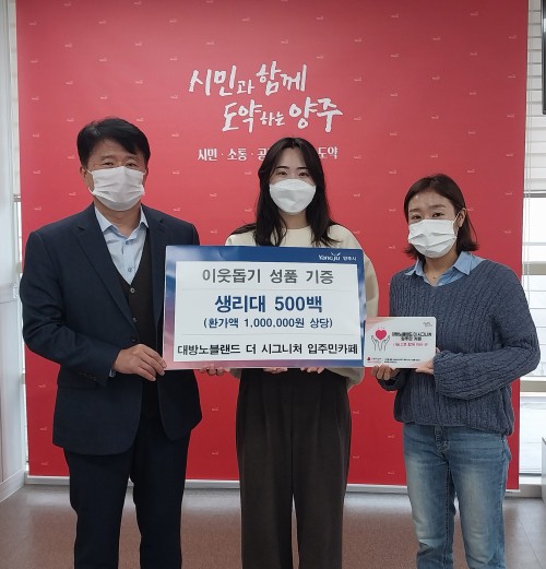 ¾çÁֽà ȸõ4µ¿ ÇàÁ¤º¹Áö¼¾ÅÍ(µ¿Àå ÀÌâ¿)´Â Áö³ 16ÀÏ ´ë¹æ1Â÷ ³ëºí·£µå ´õ ½Ã±×´Ïó ÀÔÁֹΠ¿Â¶óÀÎ Ä«Æä(¸Å´ÏÀú À̺´Âù)¿¡¼ °ü³» Ãë¾à°èÃþÀ» À§ÇØ ½á´Þ¶ó¸ç »ý¸®´ë 500¹éÀ» ±âºÎÇß´Ù°í ¹àÇû´Ù.