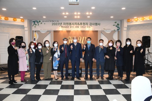 À̳¯ Çà»ç´Â ÇÑ ÇØ µ¿¾È º¹Áö°ü°ú Áö¿ª»çȸ ¹ßÀüÀ» À§ÇØ ¾Ö½áÁØ ÀÚ¿øºÀ»çÀÚ ¹× ÈÄ¿øÀڵ鿡°Ô °¨»çÇÏ´Â ¸¶À½À» ÀüÇÏ°í º¸´äÇÏ´Â ÀÚ¸®·Î, °ü³» À¯°ü±â°ü, º¹Áö°ü¿¡¼ Á¤±âÀûÀ¸·Î Ȱµ¿ÇÏ´Â ÀÚ¿øºÀ»çÀÚ, ÈÄ¿øÀÚ µî ¾à 300¿© ¸íÀÌ ÀÚ¸®ÇÑ °¡¿îµ¥ 2022³â ¿ì¼ö ÈÄ¿øÀÚ ¹× ÀÚ¿øºÀ»çÀÚ Ç¥Ã¢, ÈÄ¿øÀ§¿ø À§ÃË, °¨»çÀå Àü´Þ, »ç¾÷º¸°í ¹× »ç¾÷¿µ»ó ½Ãû µî ÀÚ¿øºÀ»çÀÚ ¹× ÈÄ¿øÀÚ¿Í ¼ÒÅëÇÏ´Â ½Ã°£À» °¡Á³´Ù.
