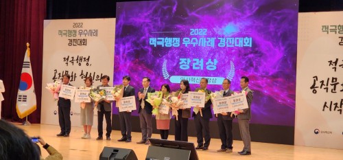 µ¿µÎõ½Ã´Â Áö³ 24ÀÏ Á¤ºÎ¼¼Á¾Ã»»ç¿¡¼ ¿¸° ÇàÁ¤¾ÈÀüºÎ, ÀλçÇõ½Åó, ±¹¹«Á¶Á¤½Ç °øµ¿ ÁÖ°ü ‘¹üÁ¤ºÎ 2022³â Àû±ØÇàÁ¤ ¿ì¼ö»ç·Ê °æÁø´ëȸ’¿¡¼ ‘Àü±¹ ÃÖÃÊ ÀΰøÁö´ÉÇü ¾Ë¸²Åå ¿î¿µÀ¸·Î ¹Î¿ø Áö¿¬ ó¸® Á¦·Î¿¡ µµÀüÇÏ´Ù!’°úÁ¦·Î ÀλçóÀå»ó°ú ÀçÁ¤ Àμ¾Æ¼ºê 1õ¸¸¿øÀ» È®º¸Çß´Ù°í ¹àÇû´Ù.