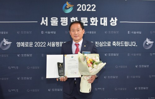 µ¿µÎõ½ÃÀÇȸ ±è½ÂÈ£ ÀÇÀåÀÌ Áö³ 25ÀÏ(±Ý) ±¹È¸ ÀÇ¿øÈ¸°ü¿¡¼ ¼¿ïÆòȹ®È´ë»óÀ§¿øÈ¸°¡ ÁÖÃÖÇÏ°í ¼¿ïÀϺ¸·µµ¹ÎÀϺ¸·¼¿ï¸ÅÀÏ·½Ã»çÅë½ÅÀÌ ÁÖ°üÇÏ´Â 2022³â ¼¿ïÆòȹ®È´ë»ó ½Ã»ó½Ä¿¡¼ ‘º¹ÁöÇàÁ¤ ÀÚÄ¡ÀÇÁ¤´ë»ó’À» ¼ö»óÇÏ´Â ¿µ¿¹¸¦ ¾È¾Ò´Ù.