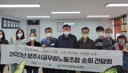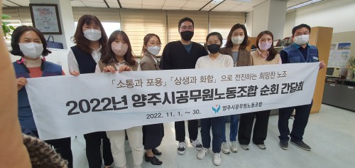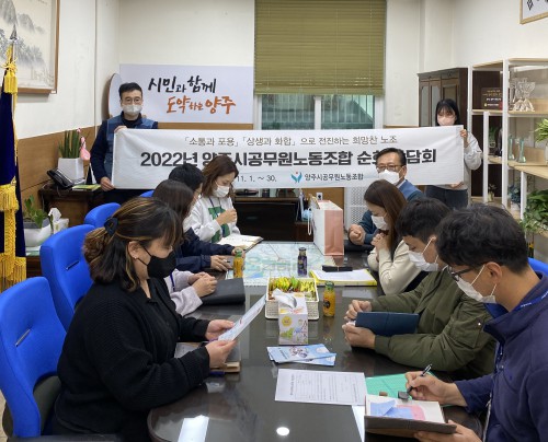 ¾çÁֽðø¹«¿ø³ëµ¿Á¶ÇÕ(À§¿øÀå ±èµ¿Èñ)Àº Áö³ 11¿ù 2ÀϺÎÅÍ 30ÀϱîÁö ³ëÁ¶ ÀÓ¿øÁø°ú ÇÔ²² º»Ã»°ú Á÷¼Ó±â°ü, 11°³ À¾¸éµ¿ Á¶ÇÕ¿ø°ú ÈÄ¿øÈ¸¿øÀ» ´ë»óÀ¸·Î °³ÃÖÇÑ ¼øÈ¸°£´ãȸ¸¦ ¼ºÈ²¸®¿¡ ¸¶¹«¸®Çß´Ù.