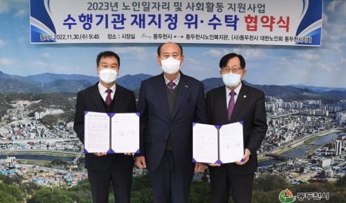 µ¿µÎõ½Ã(½ÃÀå ¹ÚÇü´ö)´Â 11¿ù 30ÀÏ ³ëÀÎÀÏÀÚ¸® ¹× »çȸȰµ¿ Áö¿ø»ç¾÷ÀÇ ¿øÈ°ÇÑ ÃßÁøÀ» À§ÇØ 2023³â »ç¾÷À» ÃßÁøÇÒ ¼öÇà±â°ü ÀçÁöÁ¤¿¡ µû¸¥ À§·¼öŹ Çù¾à½ÄÀ» ü°áÇß´Ù.