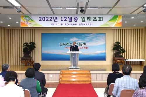 µ¿µÎõ½Ã(½ÃÀå ¹ÚÇü´ö)´Â Áö³ 1ÀÏ, ½Ãû ´ëȸÀǽǿ¡¼ 12¿ù Áß Á÷¿ø ¿ù·ÊÁ¶È¸¸¦ °³ÃÖÇß´Ù.