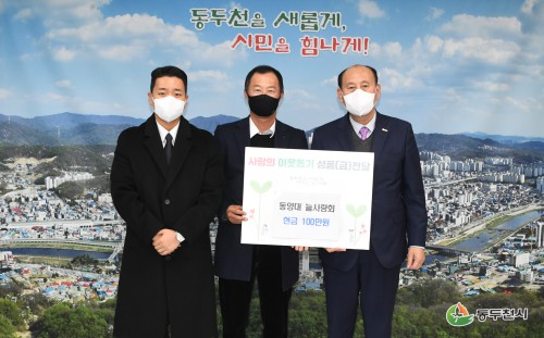 µ¿µÎõ½Ã(½ÃÀå ¹ÚÇü´ö)´Â µ¿¾ç´ëÇб³ ‘´Ã»ç¶ûȸ’¿¡¼ Áö³ 1ÀÏ µ¿µÎõ½ÃûÀ» ¹æ¹®ÇÏ¿© ±âºÎ±Ý 100¸¸ ¿øÀ» Àü´ÞÇß´Ù°í ¹àÇû´Ù.