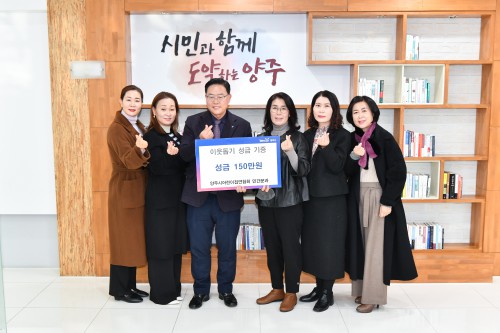 ¾çÁÖ½Ã(½ÃÀå °¼öÇö)´Â Áö³ 6ÀÏ ¾çÁֽþÀÌÁý¿¬ÇÕȸ ¹Î°£ºÐ°ú(ºÐ°úÀå ±èÈñ¼÷)¿¡¼ ½ÃûÀ» ¹æ¹®ÇØ Àú¼ÒµæÃþÀ» µ½±â À§ÇØ ¼º±Ý 150¸¸¿øÀ» Àü´ÞÇß´Ù°í ¹àÇû´Ù.