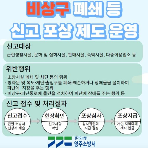 ºñ»ó±¸ Æó¼â ½Å°íÆ÷»óÁ¦µµ¶õ ºñ»ó±¸ Æó¼â‧ÈÑ¼Õ ¶Ç´Â ¼Ò¹æ½Ã¼³ Â÷´Ü µî ½Ã¹ÎÀÇ ¾ÈÀüÀ» À§ÇùÇÏ´Â À§¹ÝÇàÀ§¸¦ ½Å°íÇÏ´Â »ç¶÷¿¡°Ô Æ÷»ó±ÝÀ» Áö±ÞÇÏ¿© ½Ã¹ÎÀÇ ÀÚ¹ßÀûÀÎ ½Å°í¸¦ À¯µµÇϰí ÀθíÇÇÇØ¸¦ ÃÖ¼ÒÈÇϰíÀÚ ¸¶·ÃµÇ¾ú´Ù.
