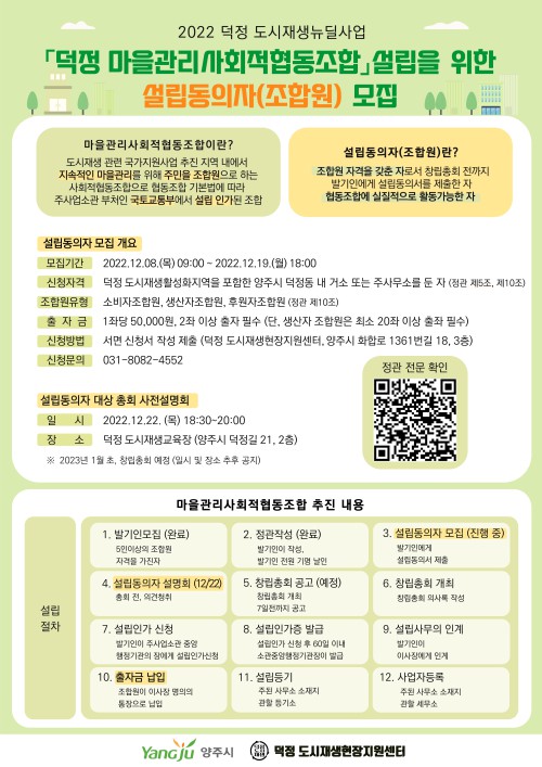¾çÁֽà ´öÁ¤ µµ½ÃÀç»ýÇöÀåÁö¿ø¼¾ÅÍ´Â ¿À´Â 19ÀϱîÁö ‘´öÁ¤ ¸¶À»°ü¸®»çȸÀûÇùµ¿Á¶ÇÕ’¼³¸³ µ¿ÀÇÀÚ(Á¶ÇÕ¿ø)¸¦ ¸ðÁýÇÑ´Ù.