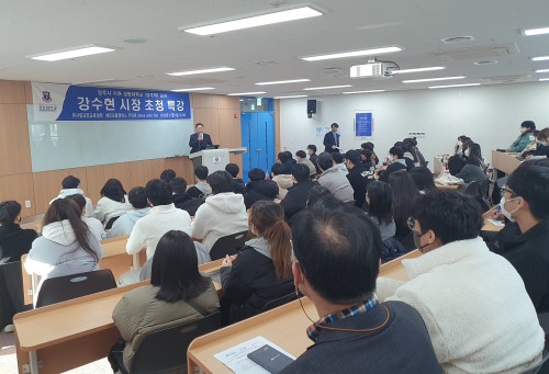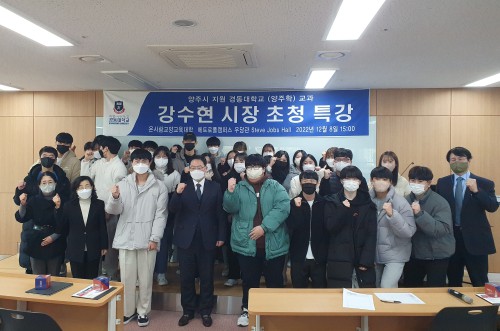 °¼öÇö ½ÃÀåÀº À̳¯ Ư°¿¡¼ ¹Î¼± 8±â ¾çÁÖ½ÃÀÇ ½ÃÁ¤ ¹æÇâ°ú ÁÖ¿ä Çö¾È¿¡ ´ëÇØ ¼Ò°³ÇÏ¸ç ¾çÁÖÇÐ °ÀǸ¦ ¼ö°ÇÏ´Â ÇлýµéÀÇ ÀÌÇØ¸¦ µµ¿Ô´Ù.