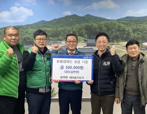 ¾çÁֽà ±¤Àû¸é ÇàÁ¤º¹Áö¼¾ÅÍ(¸éÀå ±Ç¼ø¿ë)´Â Áö³ 12ÀÏ ±¤Àû¸é »õ¸¶À»ÁöµµÀÚÇùÀÇȸ(ȸÀå ÀÌÁ¾¶ô)¿¡¼ ¿¬¸»À» ¸Â¾Æ ¼Ò¿Ü°èÃþÀÇ µû¶æÇÑ °Ü¿ï³ª±â¸¦ µ½±â À§ÇØ ¿ÂǰķÆäÀÎ ¼º±Ý 50¸¸¿øÀ» ±âŹÇß´Ù°í ¹àÇû´Ù.