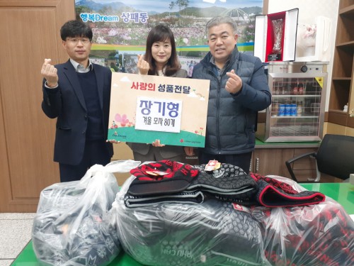 »óÆÐµ¿ ÁֹΠÀå±âÇü ¾¾´Â Áö¿ª»çȸ Ãë¾à°èÃþÀÌ µû¶æÇÑ °Ü¿ïÀ» º¸³¾ ¼ö ÀÖµµ·Ï Àü´ÞÇØ ´Þ¶ó¸ç ¼ºÀÎ¿ë °Ü¿ï¸ðÀÚ 80°³¸¦ ±âºÎÇß´Ù. À̹ø¿¡ ±âŹµÈ ¼ºÇ°Àº Ȧ¸ö ¾î¸£½Å¿¡°Ô Àü´ÞµÉ ¿¹Á¤ÀÌ´Ù.
