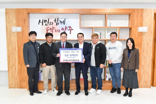 ¾çÁÖ½Ã(½ÃÀå °¼öÇö)´Â Áö³ 12ÀÏ ÇѸ¶À½»çȸÀûÇùµ¿Á¶ÇÕ(Á¶ÇÕÀå ±è½Â¹ü)¿¡¼ ½ÃûÀ» ¹æ¹®ÇØ Àú¼ÒµæÃþÀ» µ½±â À§ÇÑ ¼º±Ý 100¸¸¿øÀ» ±âºÎÇß´Ù°í ¹àÇû´Ù.