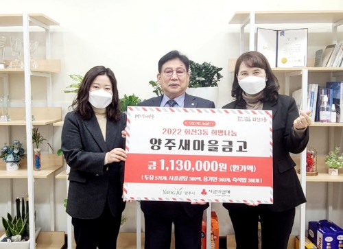 ¾çÁÖ»õ¸¶À»±Ý°í º»Á¡(ÀÌ»çÀå À±Çâ¼·)Àº Áö³ 13ÀÏ È¸Ãµ3µ¿ ÇàÁ¤º¹Áö¼¾ÅÍ(µ¿Àå ±è±Ý¼÷)¸¦ ¹æ¹®ÇØ Ãë¾à°èÃþ¿¡ Àü´ÞÇØ´Þ¶ó¸ç µÎÀ¯ 576°³, »ç°ñ°õÅÁ 360ÆÑ, ¿ë±â¸é 360°³, Áï¼®¹ä 360°³¸¦ ±âŹÇß´Ù.