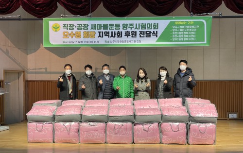 ¾çÁÖ½ÃÀå¾ÖÀÎÁ¾ÇÕº¹Áö°üÀº 12¿ù 14ÀÏ °´ç¿¡¼ Á÷Àå·°øÀå »õ¸¶À»¿îµ¿ ¾çÁÖ½ÃÇùÀÇȸ ¿À¼ö¿µ ȸÀåÀÇ ÈÄ¿ø Àü´Þ½ÄÀÌ ÀÖ¾ú´Ù.